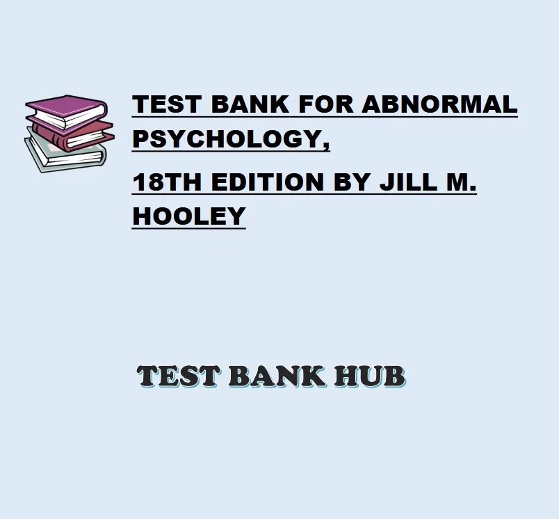Step into the complex world of psychological disorders with confidence using the Test Bank for Abnormal Psychology, 18th Edition by Jill M. Hooley. Designed for psychology students, instructors, and mental health professionals, this test bank is your essential tool for mastering core concepts, diagnostic criteria, clinical research, and treatment modalities—while reinforcing your exam readiness through expertly crafted questions.