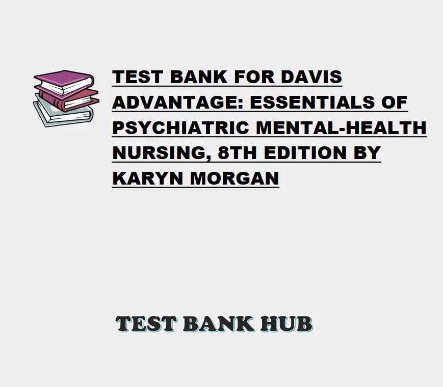 Download the Test Bank for Davis Advantage: Essentials of Psychiatric Mental-Health Nursing, 8th Edition by Karyn Morgan. Includes NCLEX-style questions, rationales, DSM-5 integration, and real-world clinical scenarios for psychiatric nursing success.