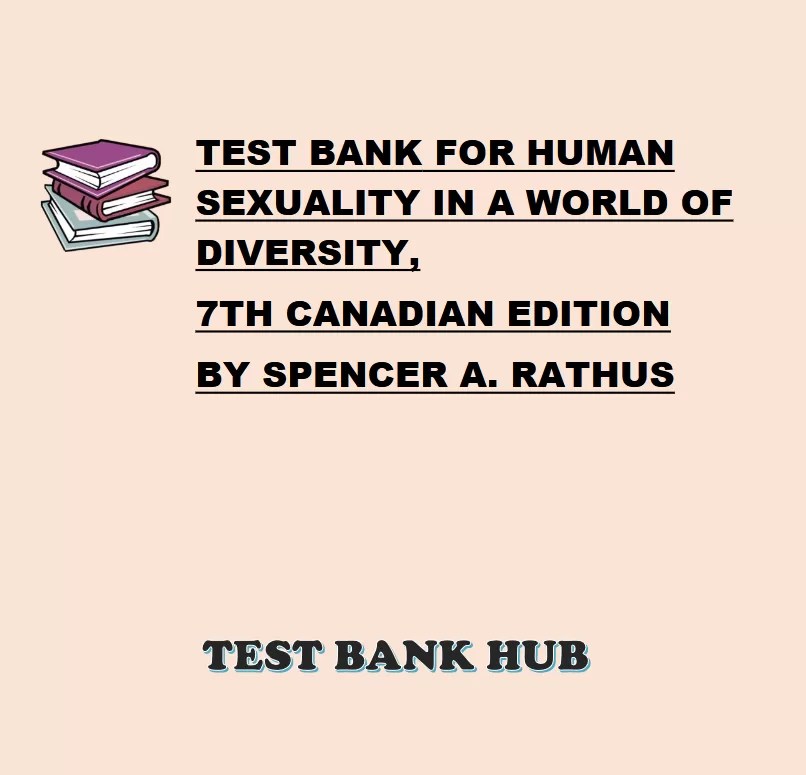 Prepare for exams with the Test Bank for Human Sexuality in a World of Diversity, 7th Canadian Edition by Spencer A. Rathus. Get instant access to hundreds of inclusive, exam-style questions with detailed answers.